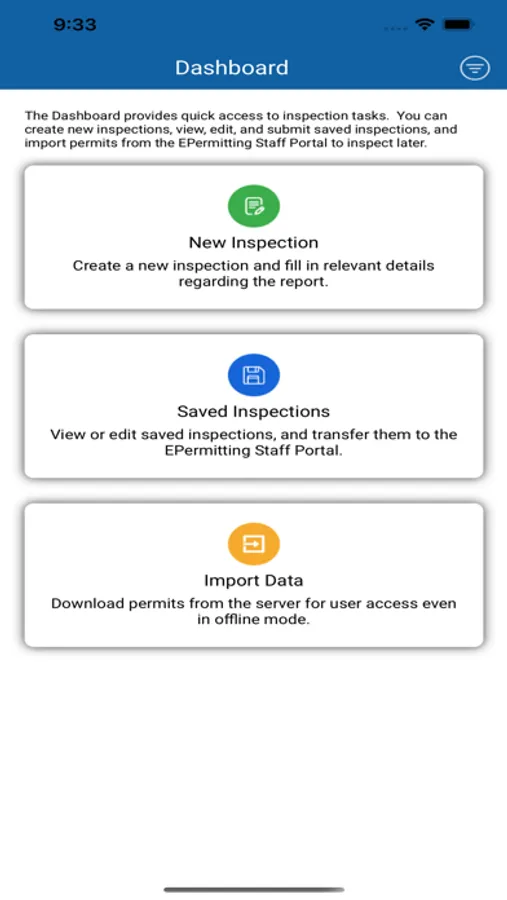- After first time login online, user can use offline feature where they can create request for permit or new inspections from remote areas where there is limited internet
