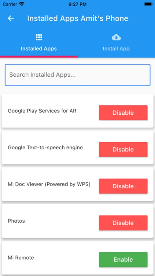 2. Apps - view existing installed apps, enable/disable or remotely install app