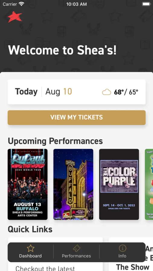 This is the official mobile app of Shea’s Performing Arts Center. Make your phone part of your unforgettable theatre experience at Shea’s Performing Arts Center.