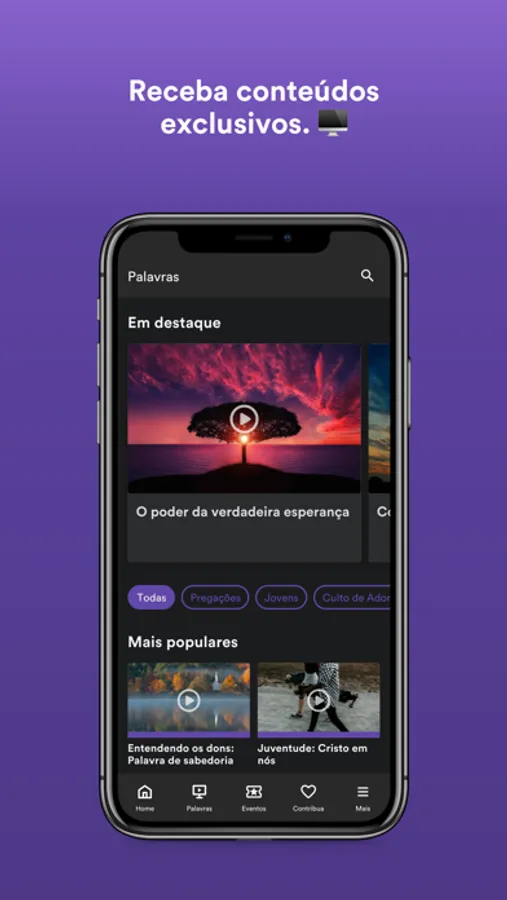 - Siga a agenda e fique por dentro de tudo que acontece na igreja, inscreva-se em eventos e tenha seus ingressos sempre com você.