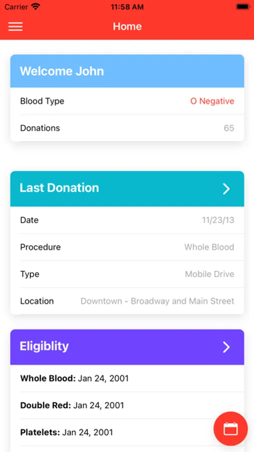 • Keep track of donation eligibility dates, so you know when you can donate blood again