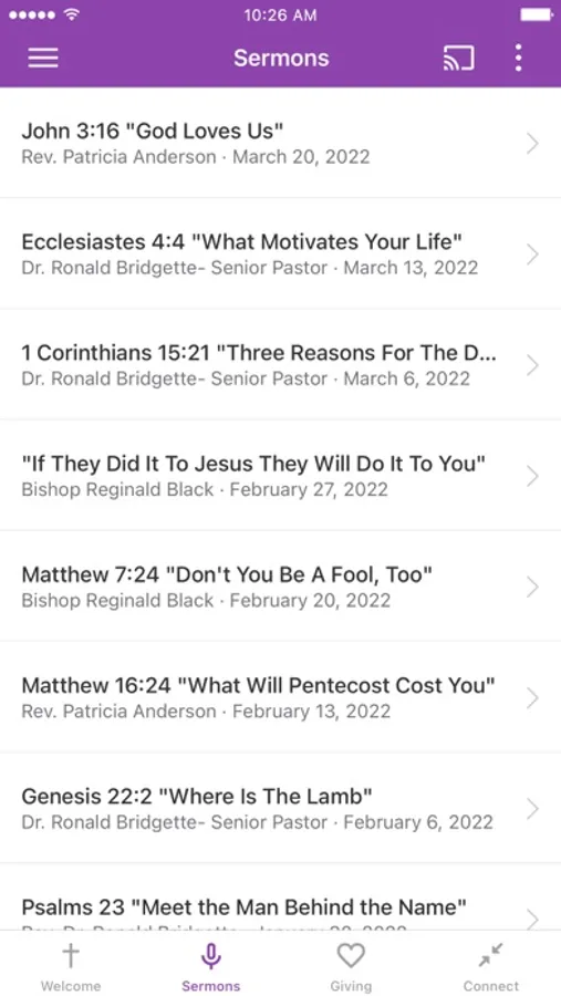 This app will help you stay connected with the day-to-day life of our church. With this app you can: watch or listen to past messages; stay up to date with push notifications; share your favorite messages via Twitter, Facebook, or email; and download messages for offline listening.