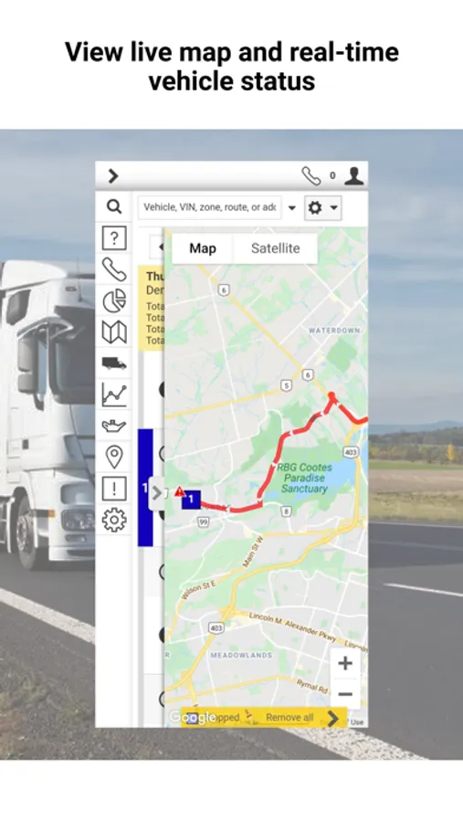 Track live location and movement of all vehicles with satellite map view and live traffic information.