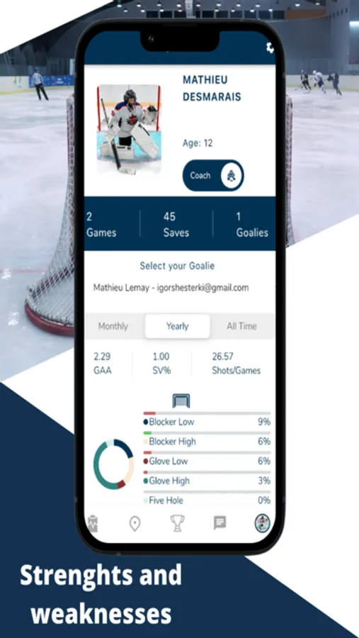 The application allows goalkeepers to evaluate each of their games by classifying each of the goals they allow. Goal classification generates personalized statistics and recommended exercises. The goalkeeper can thus better know what he needs to improve and how to improve it. Coaches are also able to evaluate the games of their goalkeepers, consult their statistics, use the recommended exercises with their goalkeepers during training. If the coach is not available for a practice, the goalkeeper will still have several personalized exercises at his disposal. The organization has an Organization profile that will allow it to follow the development of all their goalkeepers and coaches throughout the year, from season to season. Personal and group communication is possible between coaches, goalkeepers and organizations via the chat room.