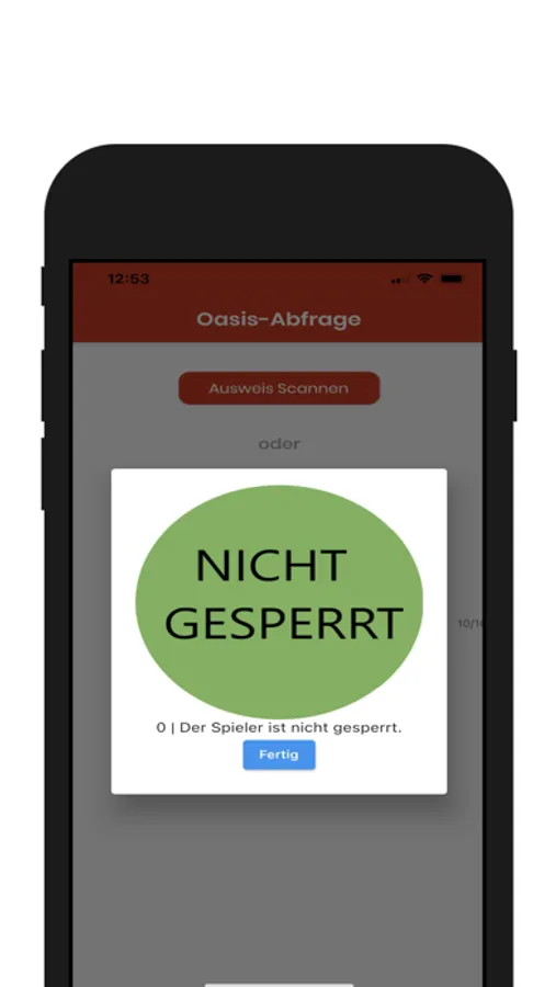 Die OasisScan App ermöglicht den Abgleich mit der Oasis Sperrdatei, dass ab dem 01.07.2021 überall wo Glücksspiel betrieben wird, verpflichtend ist.