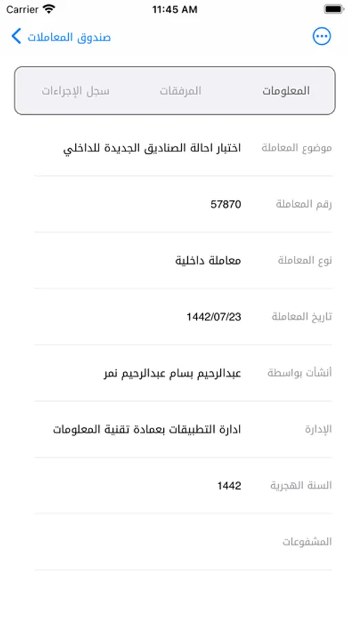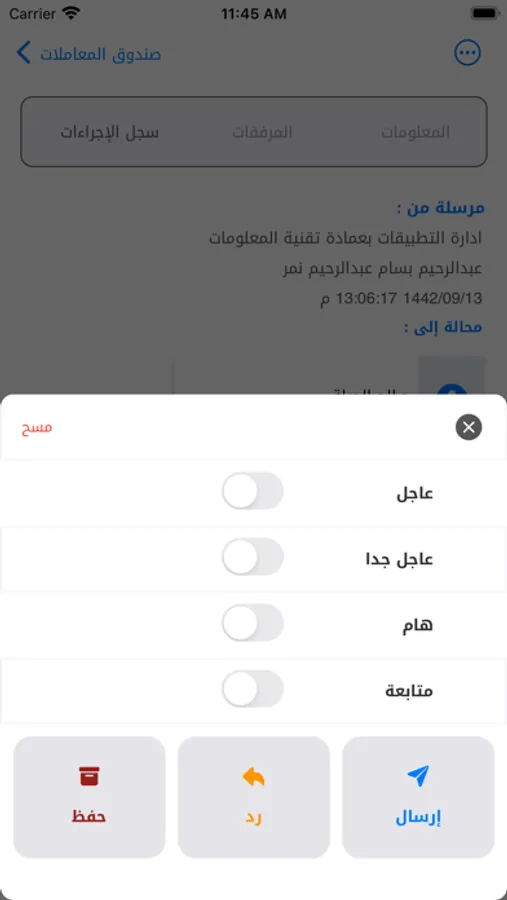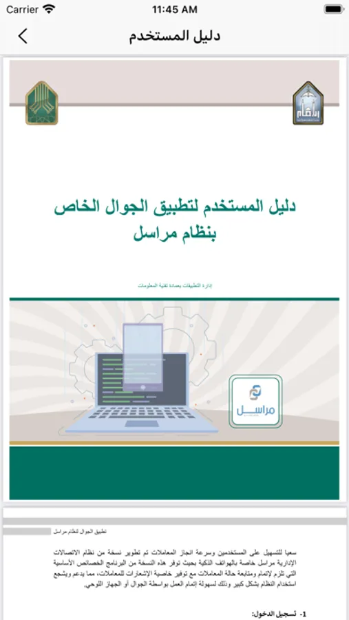 تطبيق الجوال الخاص بنظام مراسل. يوفر التطبيق الخدمات الأساسية التي تتمثل بالاطلاع على المعاملات في الصناديق الخاصة والصناديق العامة التي يملك المستخدم صلاحية الوصول لها، كما يمكن اتخاذ الاجراءات على المعاملات (إحالة، رد، حفظ)