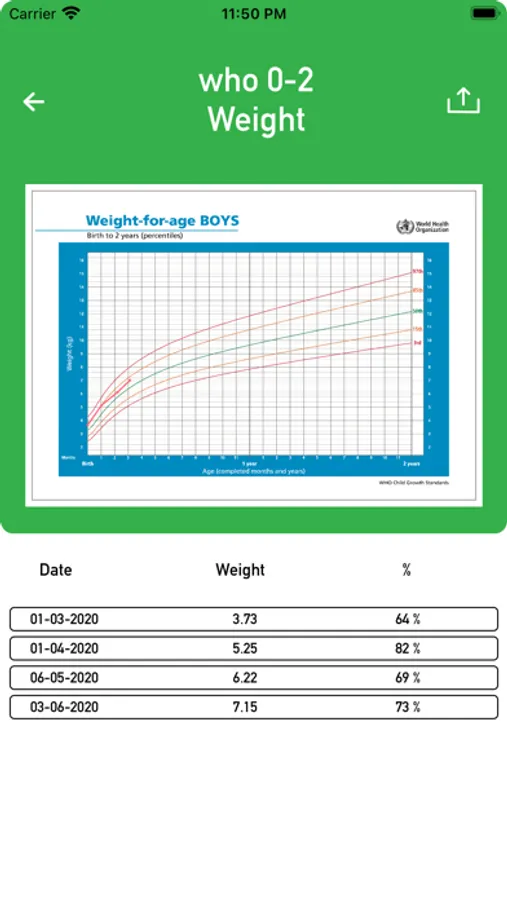 This app enables you to track the growth of your baby or child and to be confident that the growth is at the right pace. Using the references of WHO Child Growth Standards (World Health Organization), this app plots your child’s growth curves and calcultes the exact percentiles.