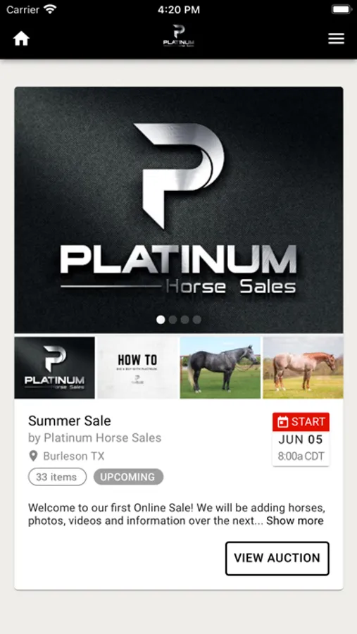 This dynamic app allows you to (1) stay informed about our upcoming auctions; (2) view items that interest you; (3) get notifications when you've been outbid; (4) bid no matter where you are located (or set and forget your maximum bid to let our platform automatically bid the lowest possible winning bid for you). This is the go-to-source for up-to-the-minute information on all of our auctions.