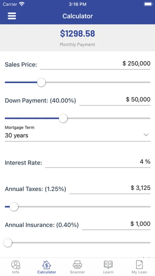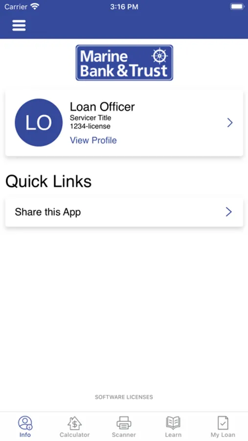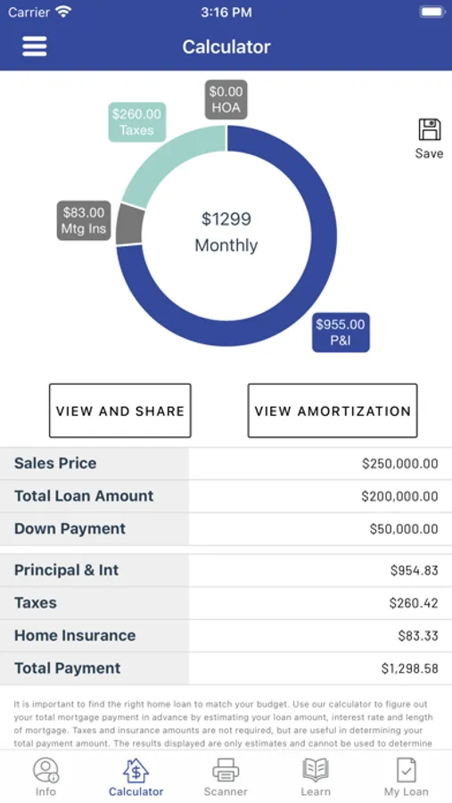 The calculations provided by the Marine Bank Mortgage Mobile App are useful in giving you an idea of what homeownership might mean for you. Please be sure to contact your Marine Bank Loan Officer for a solution tailored to your specific financial situation, needs, and goals. Your loan officer can also assist you with any questions you have about your loan and the loan approval process.