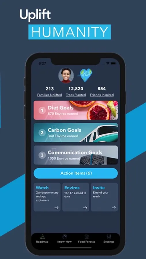 The United in Heart app is a public awareness and constructive action campaign to solve climate change through coordinated action on food, trees and communication. The app roadmap outlines the practical steps through short videos and goal-setting tools. It enables users to exponentially amplify climate solution communication. In addition, we accept food forest tree planting donations. Our tree plantings are fully veganic; we do not use animal manure to plant trees.
