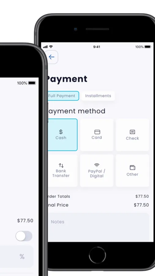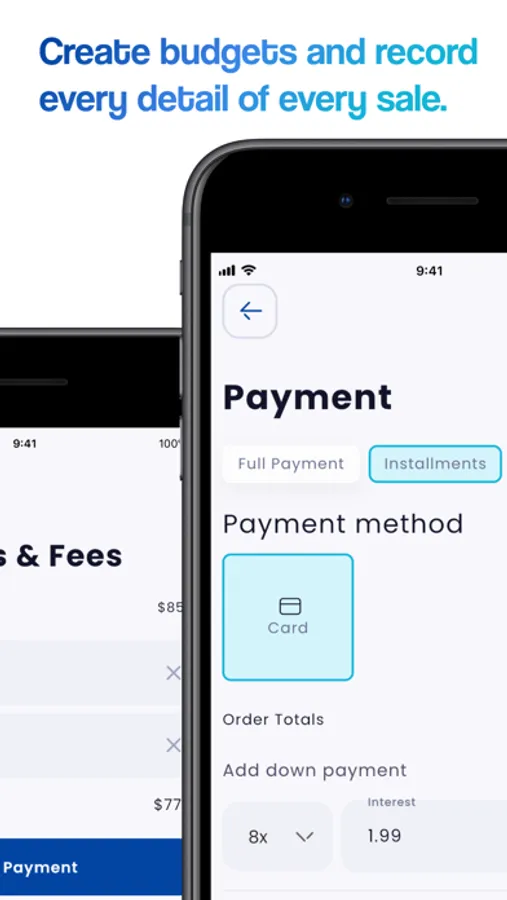 4) Choose the quantity, add discounts or fees, define the payment method and even have a receipt or invoice simple at the end!
