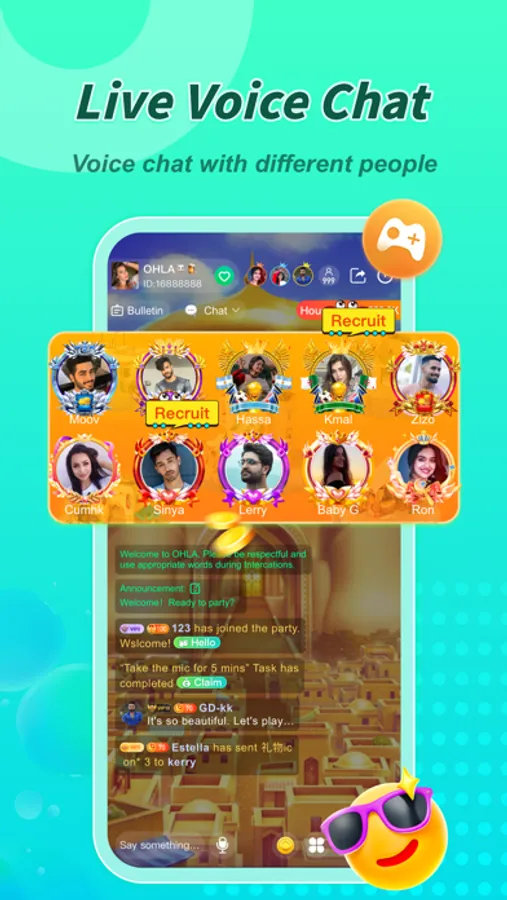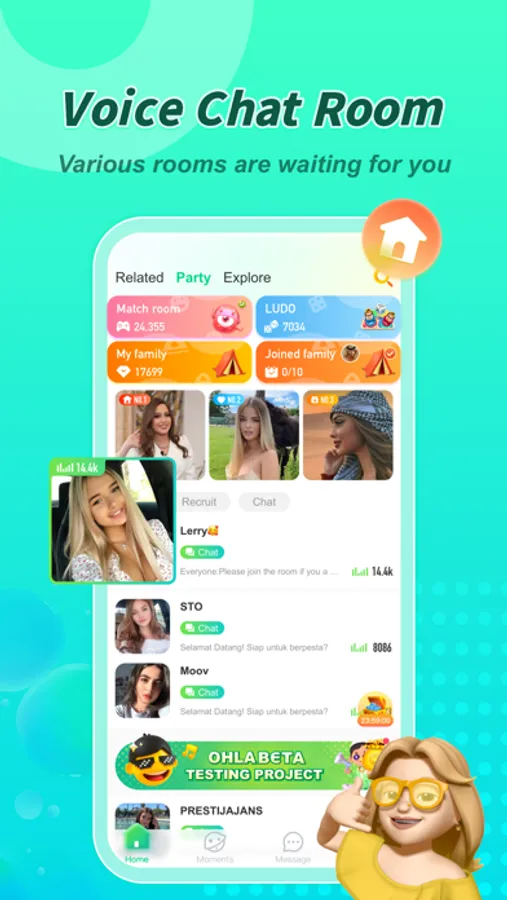 - Free voice chat rooms - Join a group voice chat room and start a party, have fun with your friends. OHLA is an amazing app where you can talk with a lot of interesting people freely. Broadcast your highlights in group chat. Let's get the party started!