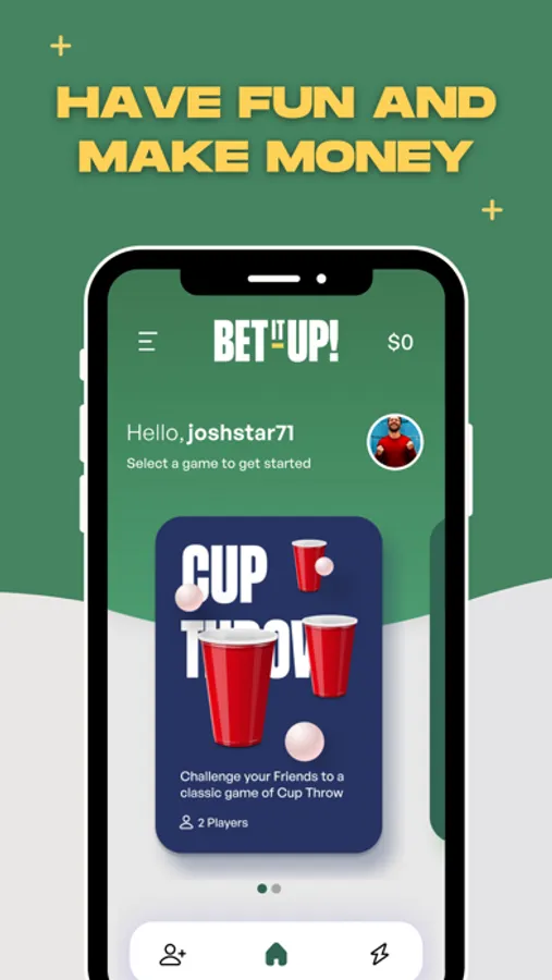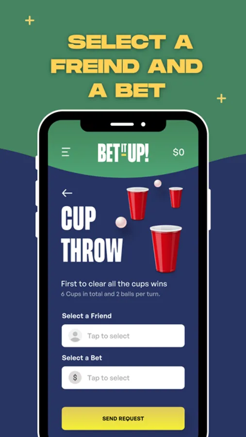Bet It Up is a mobile app that allows users to play mini-games against their friends and wager money. Currently, the game selection includes Cup Throw and 8 Ball Pool.