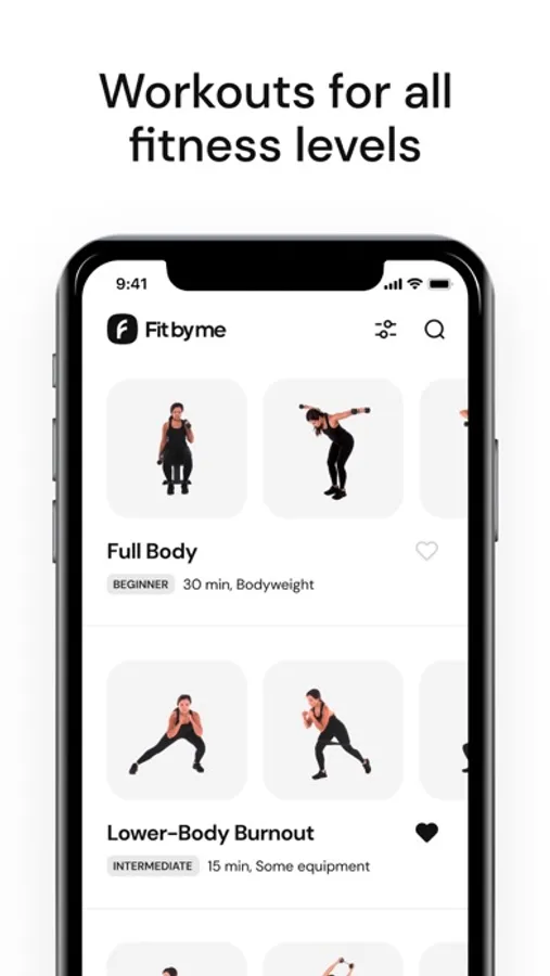 workouts, the app offers filters that narrow down pre-made workouts relative