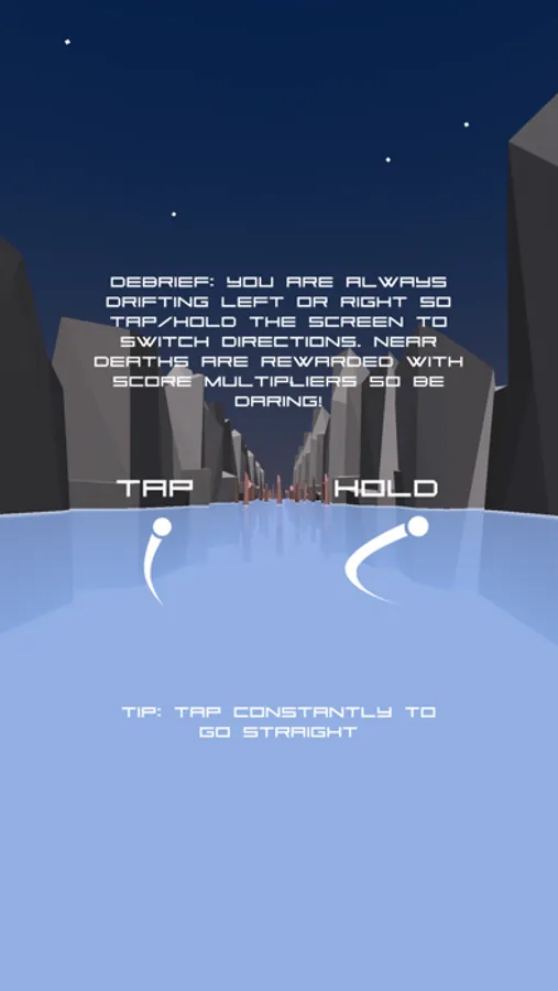 Your mission is simple: reach the end of the skyline. Either tap or hold the screen to dodge the oncoming obstacles in your endless journey. Take risks to obtain score multipliers!