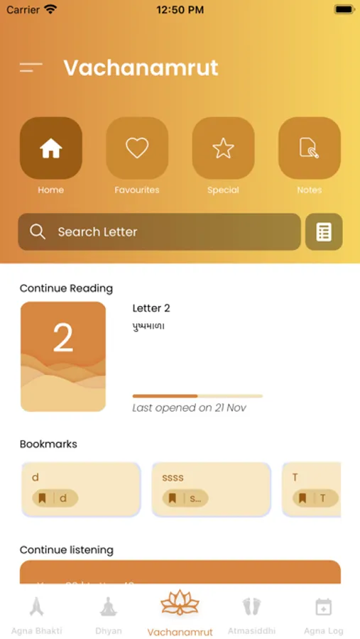 You can save your favourite letters to your personal list, listen to Param Krupaludev's bhakti in the audio library, add notes and highlights for personal study and place multiple bookmarks to keep a track of personal and satsang reading, all from your personal mobile device.