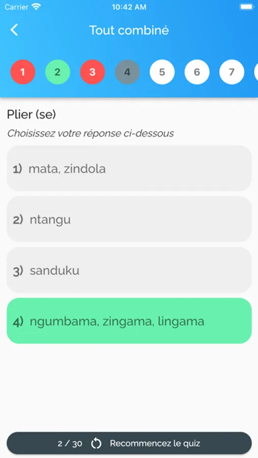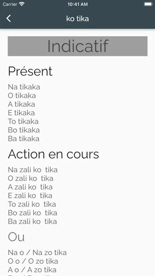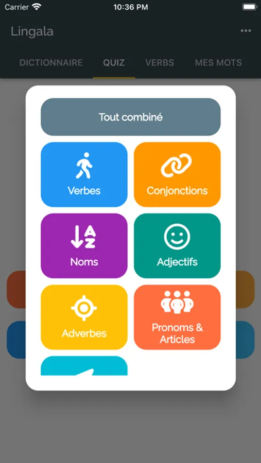 It features an option to see the type of words, a list of plurals, and synonyms for a particular word in Lingala. In addition, the app offers audio support which includes the pronunciation of each word in Lingala. All the verbs are listed in a specific category to better navigate to the selected verb conjugation table, which includes a variety of tenses. Users can practice using the quiz mode and flashcards. In addition, favorite words can be saved for future review.