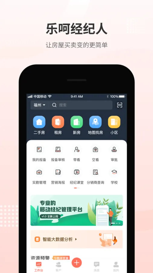 乐呵经纪人是乐呵找房专为房产经纪人打造的一款房源客源自营销智能工具。乐呵找房是一家深耕福建房产,集齐新房、二手房、租房、房地产研究学院等领域的互联网创新平台。旗下拥有可观地产、中联立信、佳宅等的福建知名房产经纪公司品牌,依托线下几百家实体直营门店和品牌加盟商的管理优势,平台连接不同品牌、经纪人、业务共享实现线上线下互助等方面,为客户提供更优质、更便捷的服务。