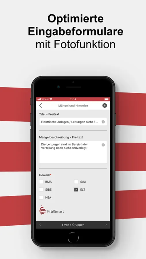 Mit PrüfSmart haben wir eine Lösung entwickelt, die Sachverständige bei der ordnungsgemäßen Prüfung unterstützt und Prüfberichte erstellt, die den Anforderungen der länderspezifischen PrüfVO und Prüfgrundsätzen entsprechen. Egal ob als einzelner Sachverständiger, oder als Teil eines großen Teams: Entdecken Sie, wie PrüfSmart Ihre Prüfabläufe digitalisieren kann.