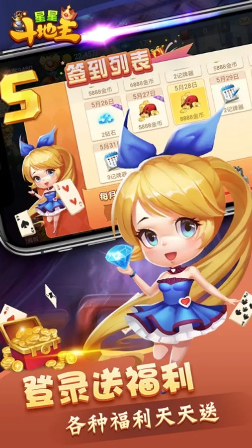 精心打造,经典棋牌品牌,与亲朋好友和全国玩家一起《星星斗地主》!