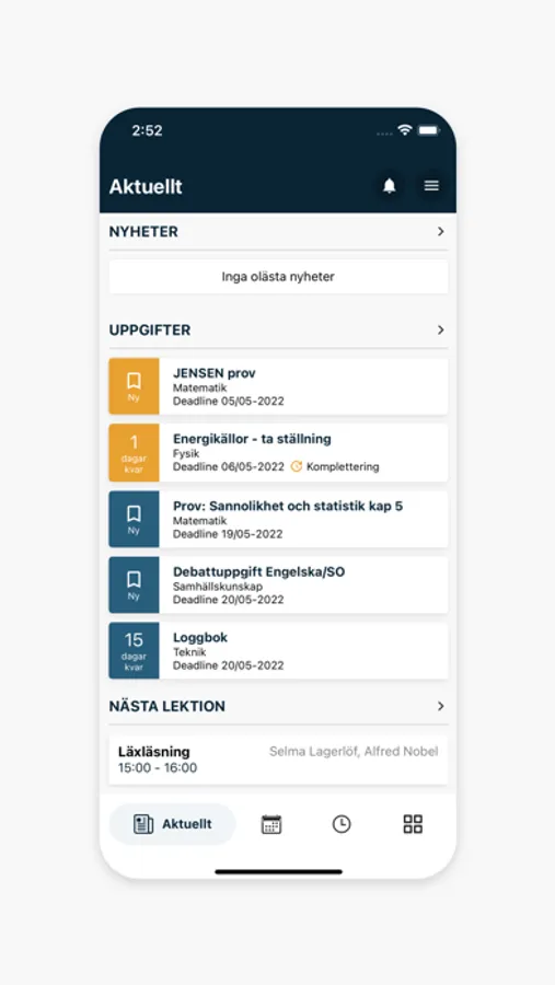- Se nyheter, närvarostatistik, kontakter till lärare
