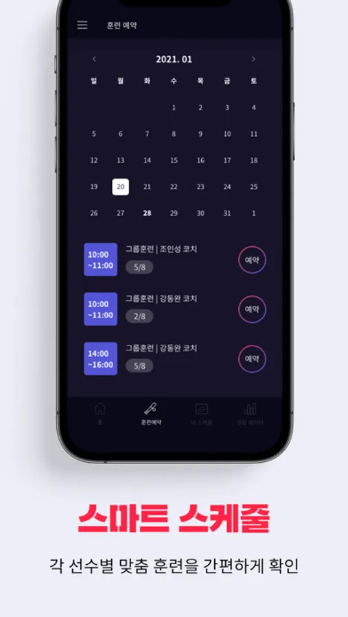 - 선수들의 훈련 데이터를 기록하고 측정해, 전문 코치진이 고안한 선수별 개인 맞춤화 훈련 프로그램을 제공 합니다.