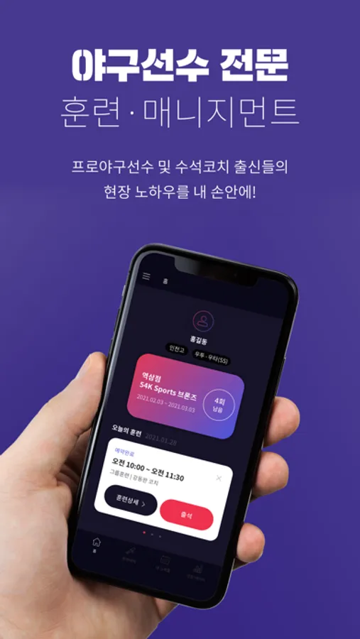 - 프로야구선수 및 수석코치 출신들이 야구선수 전문 트레이닝 센터를 직접 운영하며 쌓은 현장 노하우를 디지털화 했습니다.