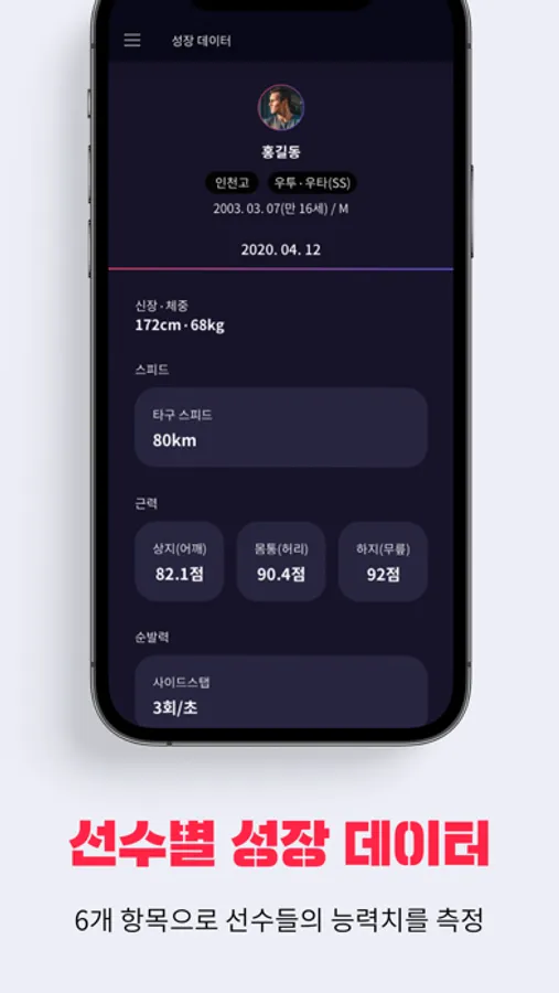 - 선수 별 성장 데이터를 측정하고 관리합니다.