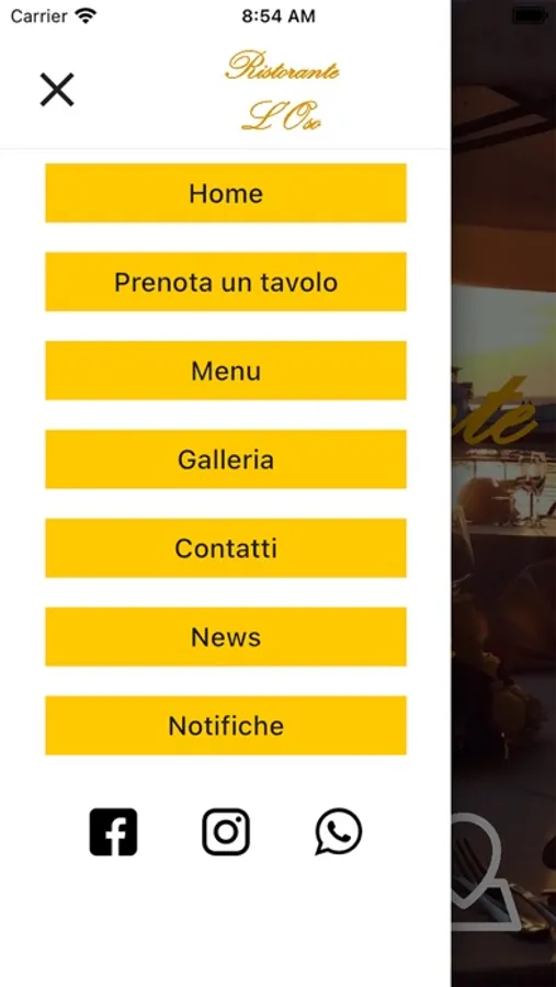 App per prenotare un tavolo al ristorante L'Oso. Dove è possibile informarsi su eventi e rimanere in contatto con il locale.