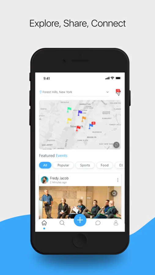 Explore upcoming events and promotions in your community or any community. Businesses can create free advertisements. Both of the events and business promotions appear on the interactive map. Everything one normally does in their community, all in one easy to find place. Follow businesses, individuals, or groups. Get notifications from individuals or your favorite businesses. Create groups and post other things, not just events or business promotions. Stay up to date with everything going on in your community with our interactive calendar, explore, connect, enjoy