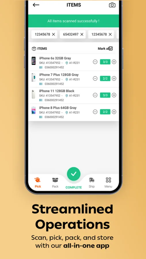 Perform picking, packing and shipping activities from your mobile with barcode scanning functions easily by OTO PACK. Generate batch picking lists, do packaging and quality checks and creating shipments with your mobile phones or tablets in warehouse by using Bluetooth scanners or camera of your mobile.