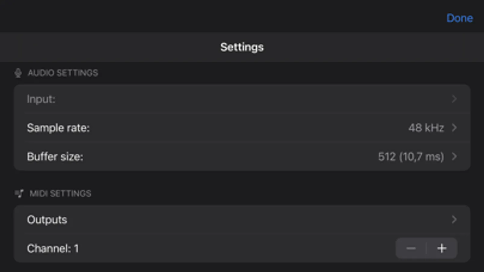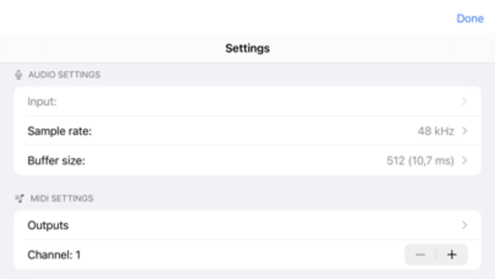 The app sends MIDI events via the virtual MIDI port. The list of active and inactive MIDI ports is available in the application settings in the MIDI Settings → Outputs section.
