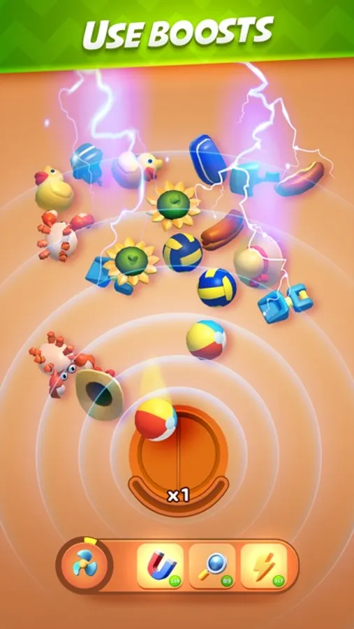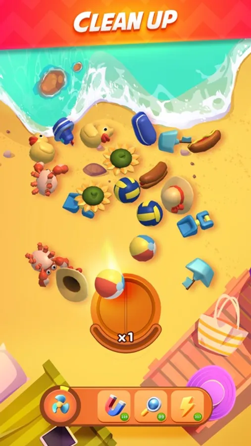 - Find and merge identical hidden objects in the clutter to make them disappear from the board