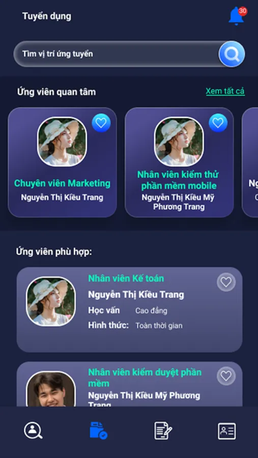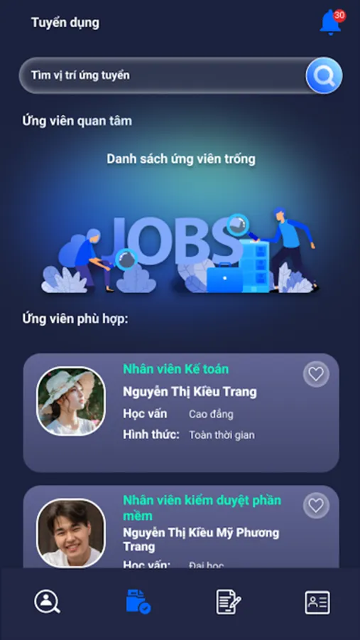 - Tìm kiếm ứng viên phù hợp với vị trí tuyển dụng;