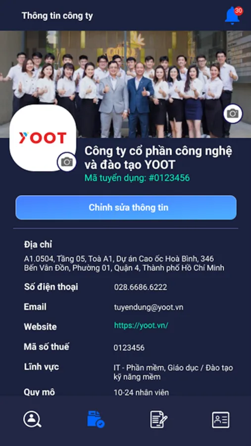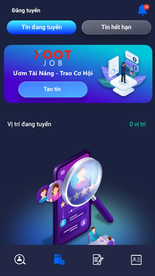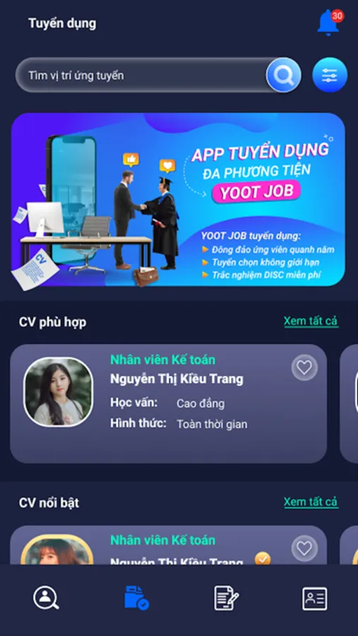 Ứng dụng Yoot dành cho Nhà tuyển dụng có các chức năng cần thiết.