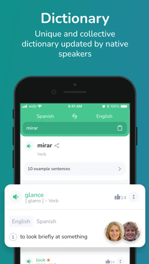 Together with you and other users, we are creating a unique collective dictionary that is constantly evolving and updated daily with translations. Add examples of the use of words in context, new slang expressions in your native language.