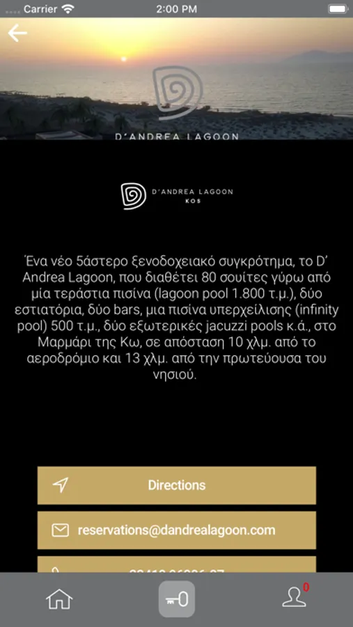 Discover now the unique environment and the culture of D'Andrea Lagoon iOS users can now live the experience even before they arrive. Whether you are a guest, a visitor or a hotel connoisseur, this app will give you access to our hotel unlike any other. All users can learn about hotel services, facilities and Daily Privileges.