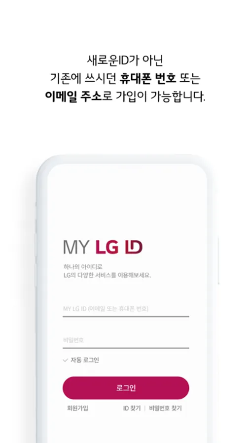 이제 MY LG ID 딱 한번의 쉽고 빠른 가입으로 LG에서 제공하는 다양한 서비스를 이용할 수 있습니다.
