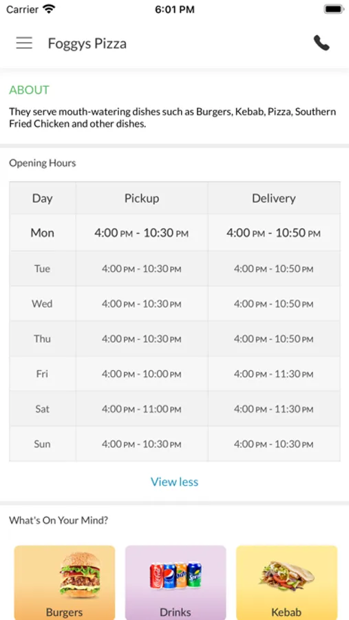 Here at Foggys Pizza, we serve a variety of food such as; pizzas, burgers, wraps, kebabs and more.