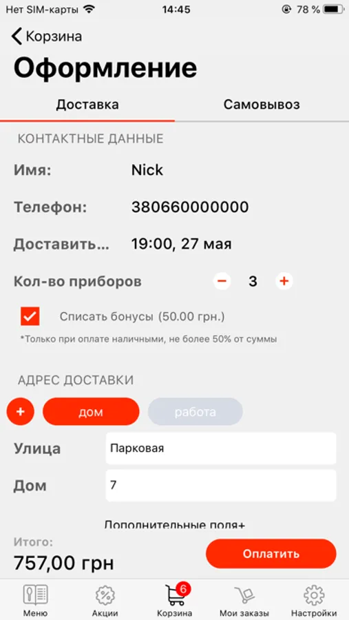 • встановити бажаний час доставки замовлення за вказаною адресою;