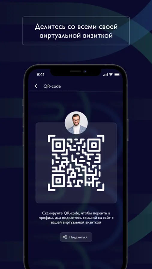 ВИЗИТКА – по QR-коду Вы можете поделиться своей виртуальной визиткой! Если у человека нет приложения, он сможет открыть виртуальную визитку на сайте.