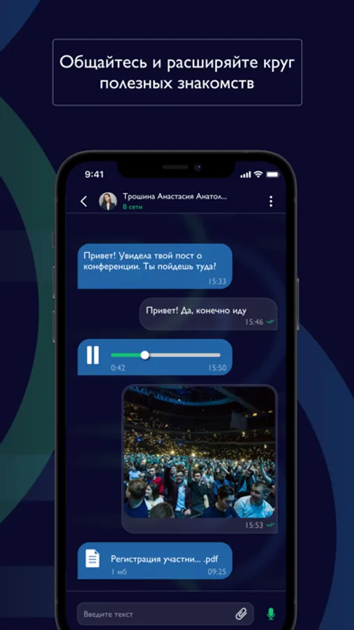 ЧАТ – общайтесь и расширяйте круг полезных знакомств! Создавайте групповые чаты, отправляйте фото, файлы и аудиозаписи.