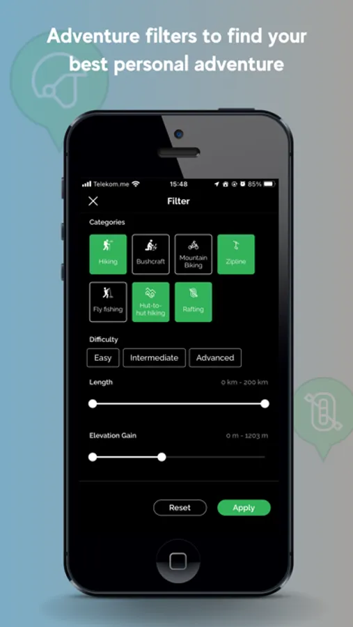 Sort info fast. Filters for both adventure and accommodations allow users to screen for specific categories as well as identify key features to fit their travel needs.