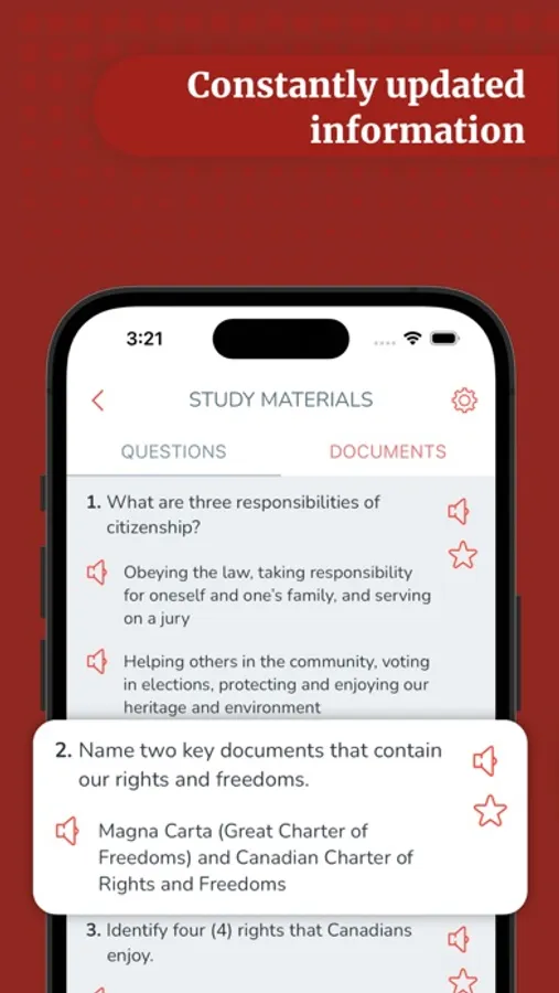 Our app's contents are based on the official study guide of the Canadian government, Discover Canada - The Rights and Responsibilities of Citizenship. Study with confidence and learn from trustworthy information.
