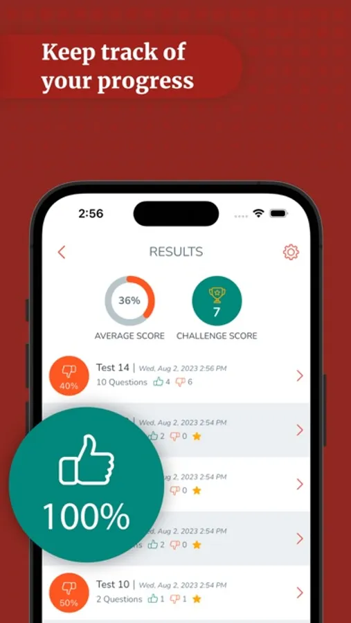 See detailed performance results and statistics to track your progress.