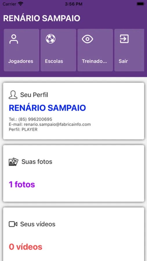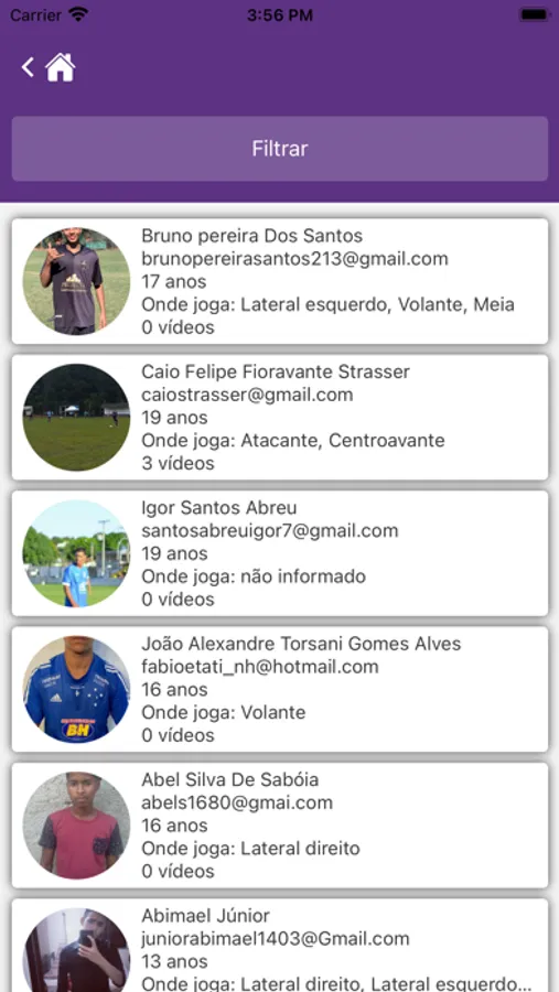 - Atletas cadastrados (as) podem mostrar seu talento através de vídeos e fotos