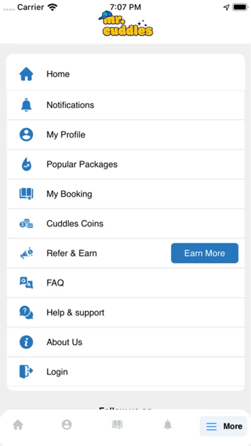Some of the popular Benefits available on the Mr Cuddles Application:-