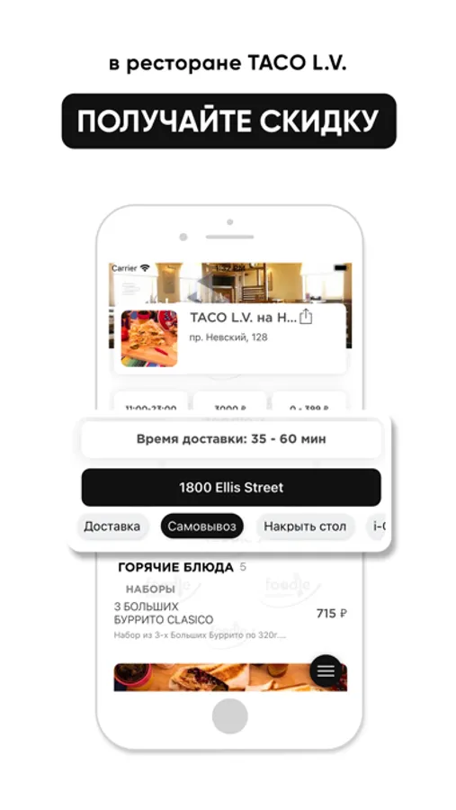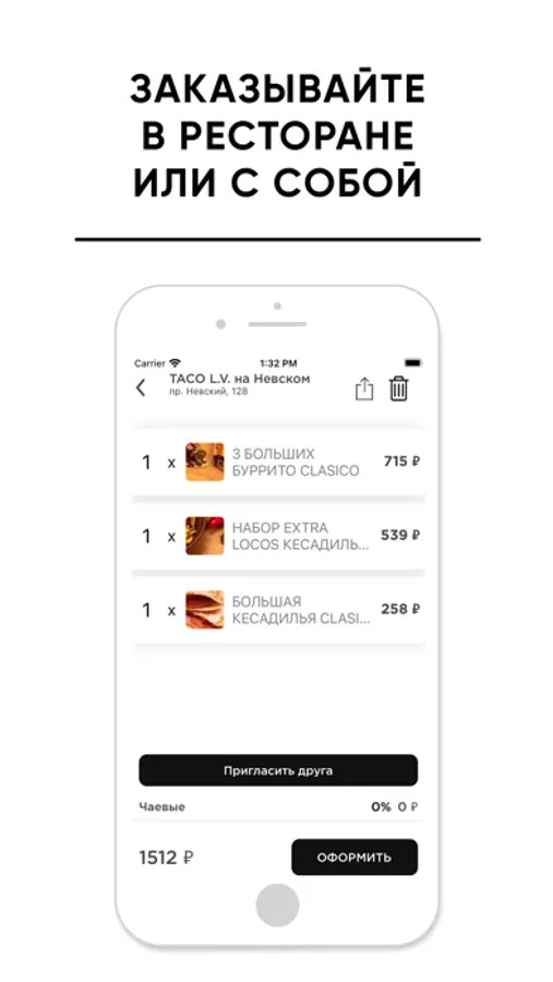 Заказывайте доставку в нашем мобильном приложении или оформляйте самовывоз. Укажите время визита, и мы подготовим всё «с собой» точно к этому моменту.