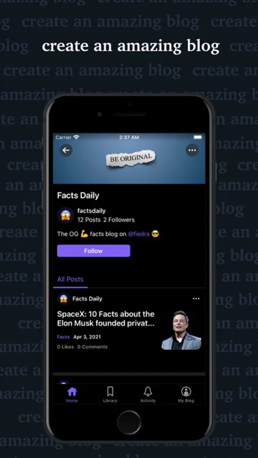 Fiedra is the first social media platform for blogs. Create an amazing blog, without any hassle, right from the palm of your hand.