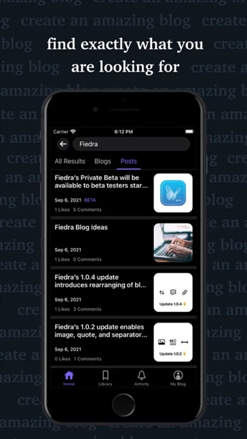 You can read blogs and blog posts published via Fiedra in the app or in any browser. Like and comment on posts to interact with the author, or save it to read later. Fiedra has it all!